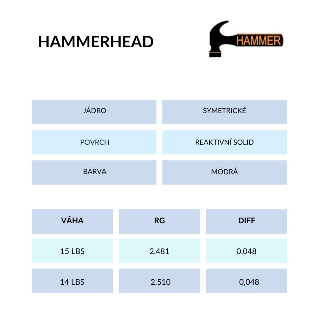 Tento nový Hammerhead, je postaven na osvědčeném jádru Spheroid, které poskytuje maximální stabilitu a sílu při každém hodu. Ve spojení s reaktivním povrchem Aggression Solid nabízí výjimečný hák a skvělou kontrolu na středně těžkých až těžkých olejových vzorcích. Díky povrchové úpravě 2000 Siaair reaguje hladce, ale zároveň agresivně, což mu dodává konzistenci a všestrannost. Hammerhead je ideální volbou pro hráče, kteří chtějí posunout svou hru na vyšší úroveň a získat výhodu na každé dráze.